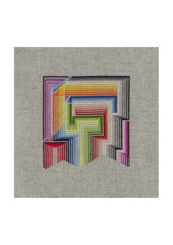 Artwork: ‘Being pulled 6 strings’ is created with a collection of 6 threads for a colour run. For all the going back and forth in this, there is also a feeling of going around a corner, which is positive. Those positive vibes don’t always seem obvious to us, so we need to seek them out and celebrate them. Original artwork approx. 155mm wide by 160mm high on 14 count Aida.